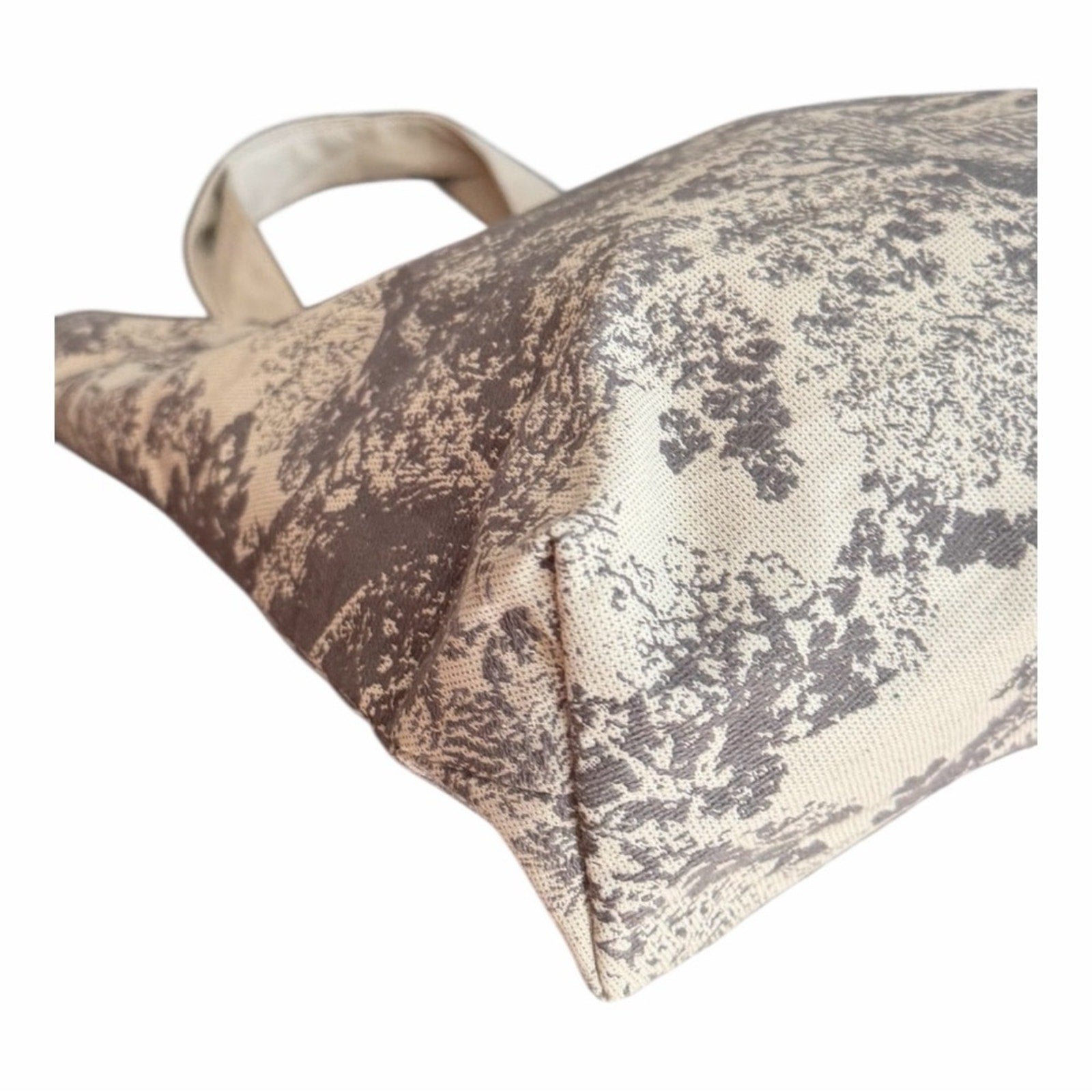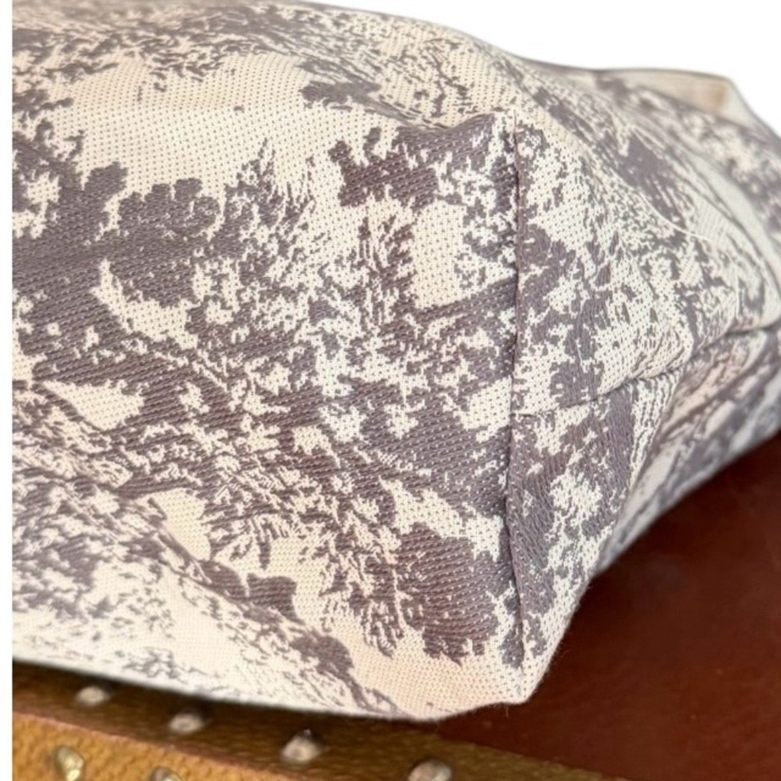 • Color: Neutral beige / gray toile print
