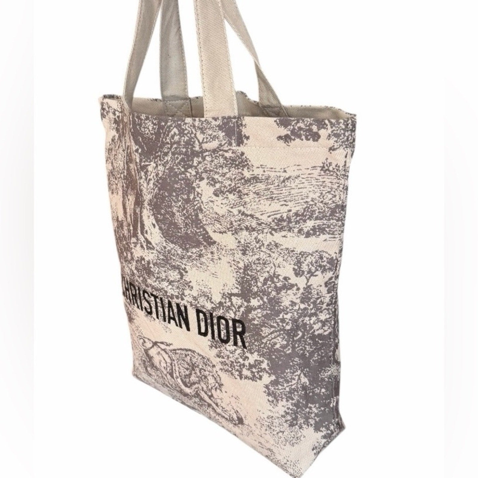 Authentic Christian Dior boutique canvas tote Dior toile print with front logo.