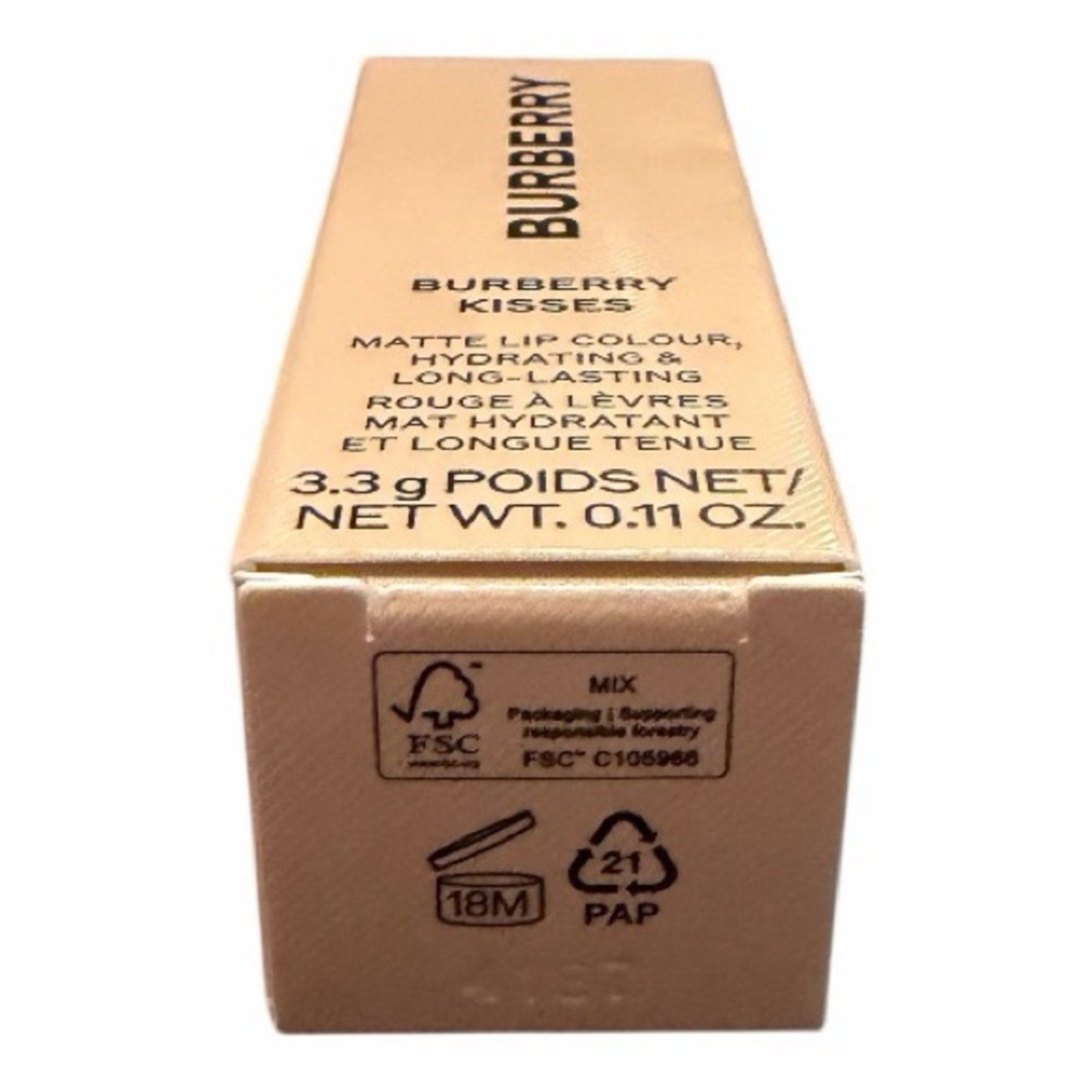 Brand new, never used, and comes in the original Burberry box. A beautiful warm peachy nude with a matte finish that is hydrating and long-lasting.