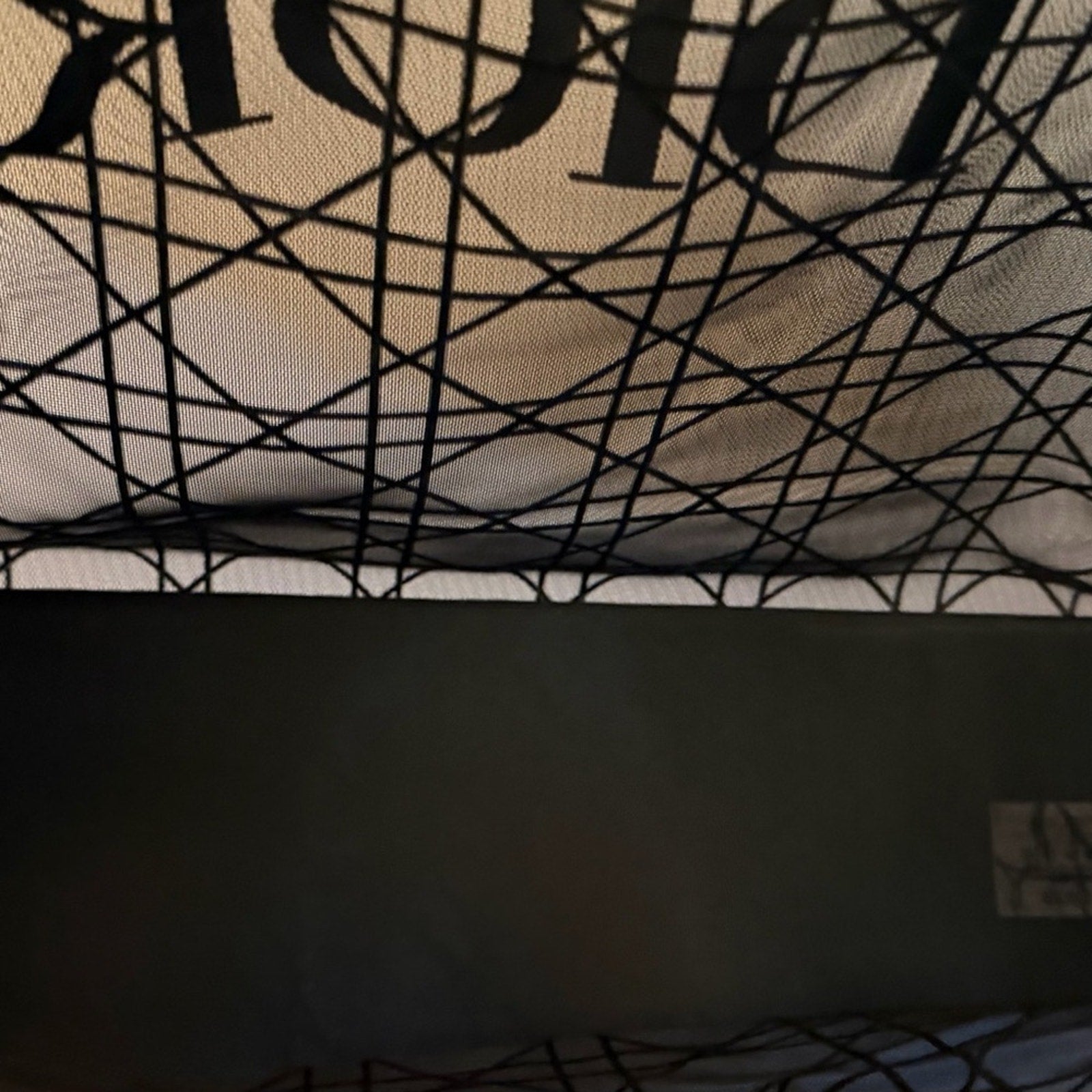 This large Dior Beauty tote features the iconic Cannage pattern with tonal DIOR logo detailing. Crafted in a structured mesh material with reinforced edges and a bottom insert to help maintain its shape. Comes in original Dior packaging, making it especially desirable for collectors or gifting.