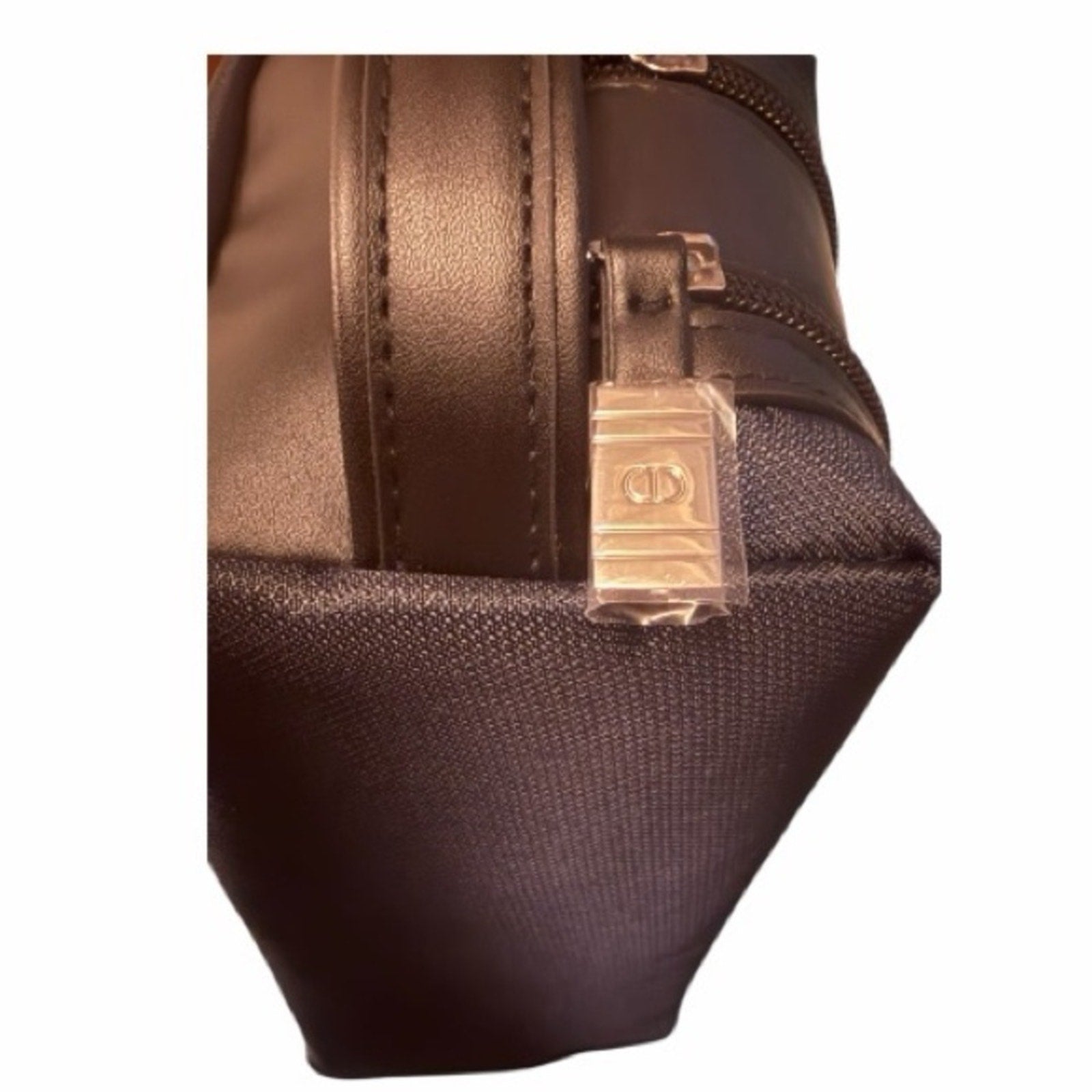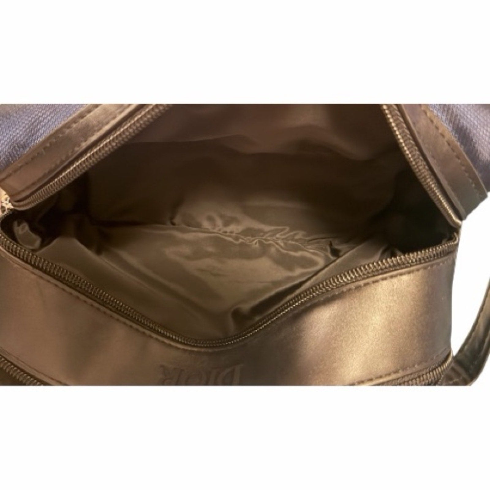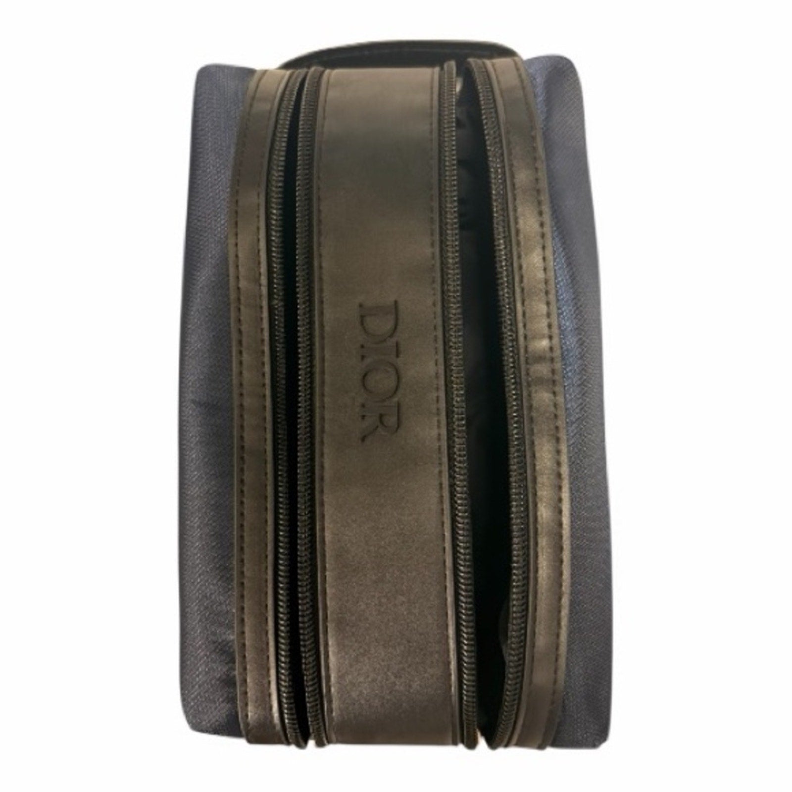 Features a structured navy canvas-textured exterior with faux leather accents and an embossed DIOR logo. Designed with a protective insulated interior, making it ideal for travel, grooming essentials, or everyday organization.