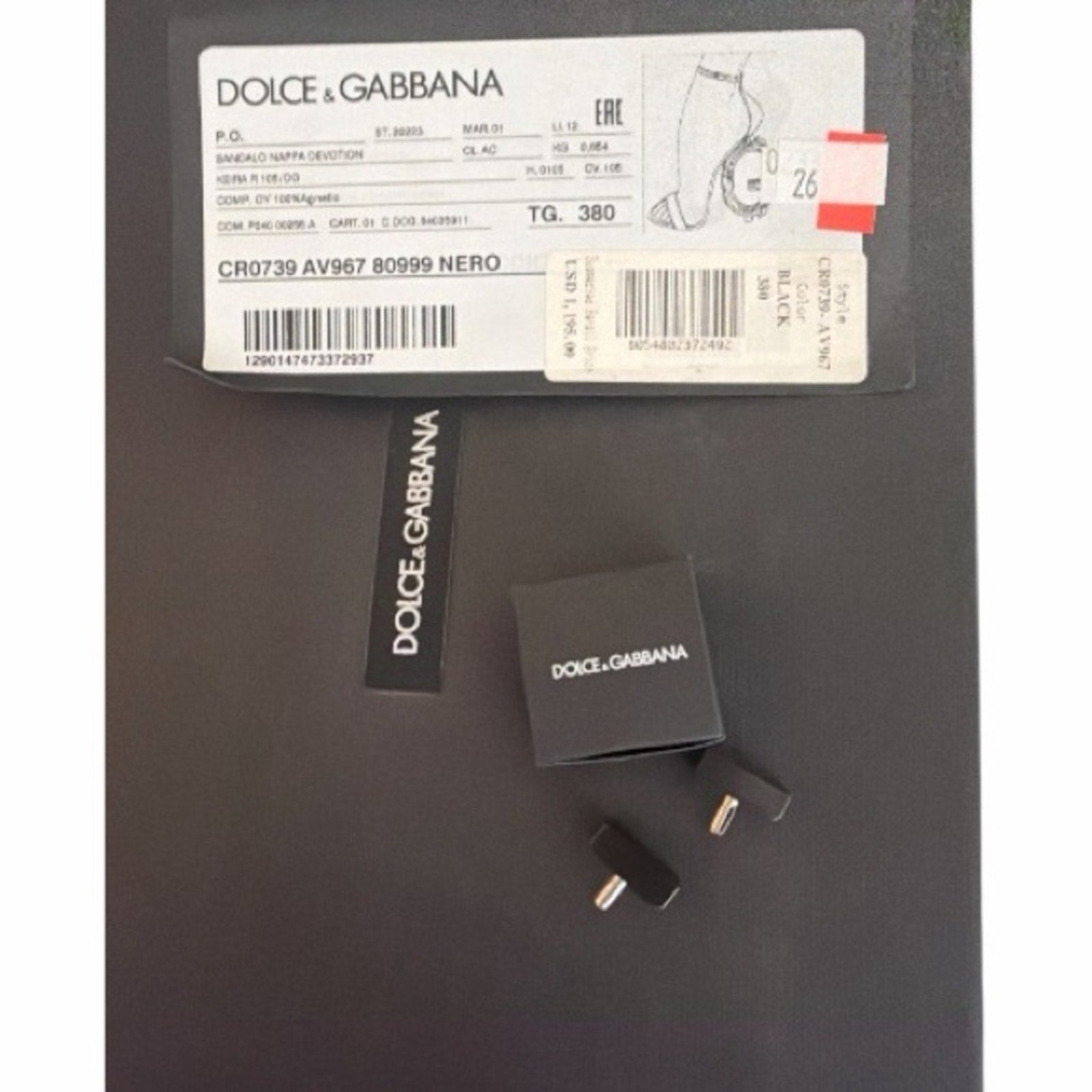 These iconic heels feature a dramatic gold D&G logo heel, sleek black leather straps, and an ankle buckle closure. A true statement shoe — perfect for collectors, editorial styling, or elevated evening wear.