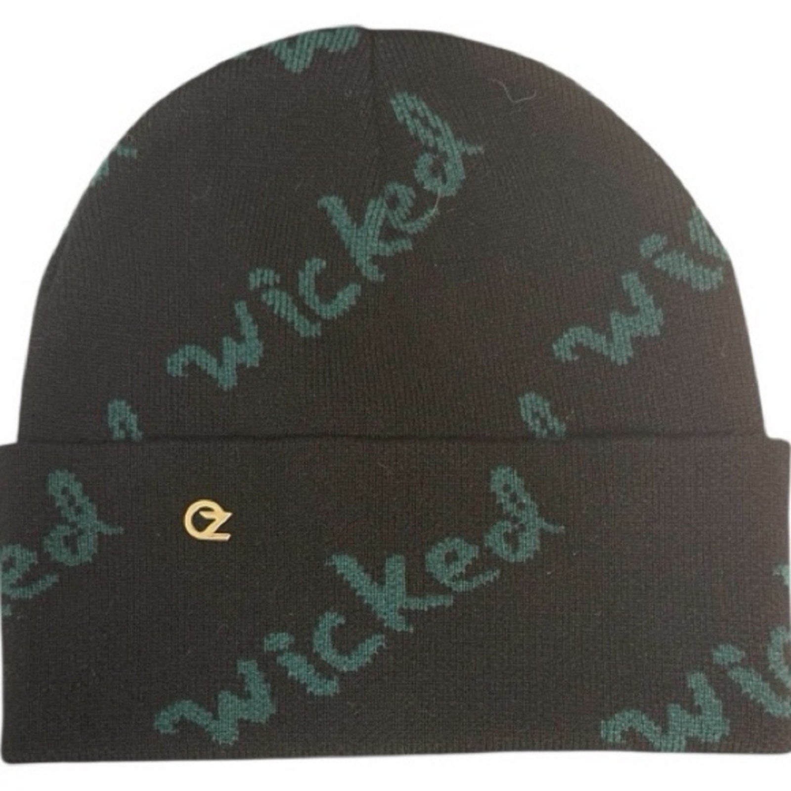 "wicked" text knit design, cuffed silhouette, and subtle gold logo pin detail. A bold yet wearable statement piece from Eugenia Kim, known for elevated, fashion-forward headwear.