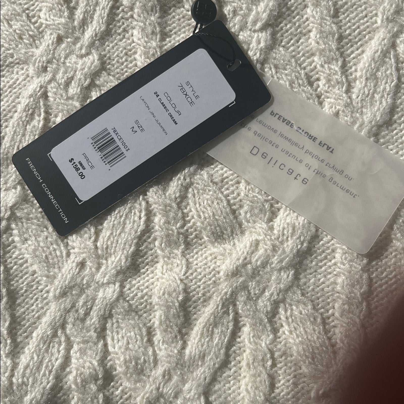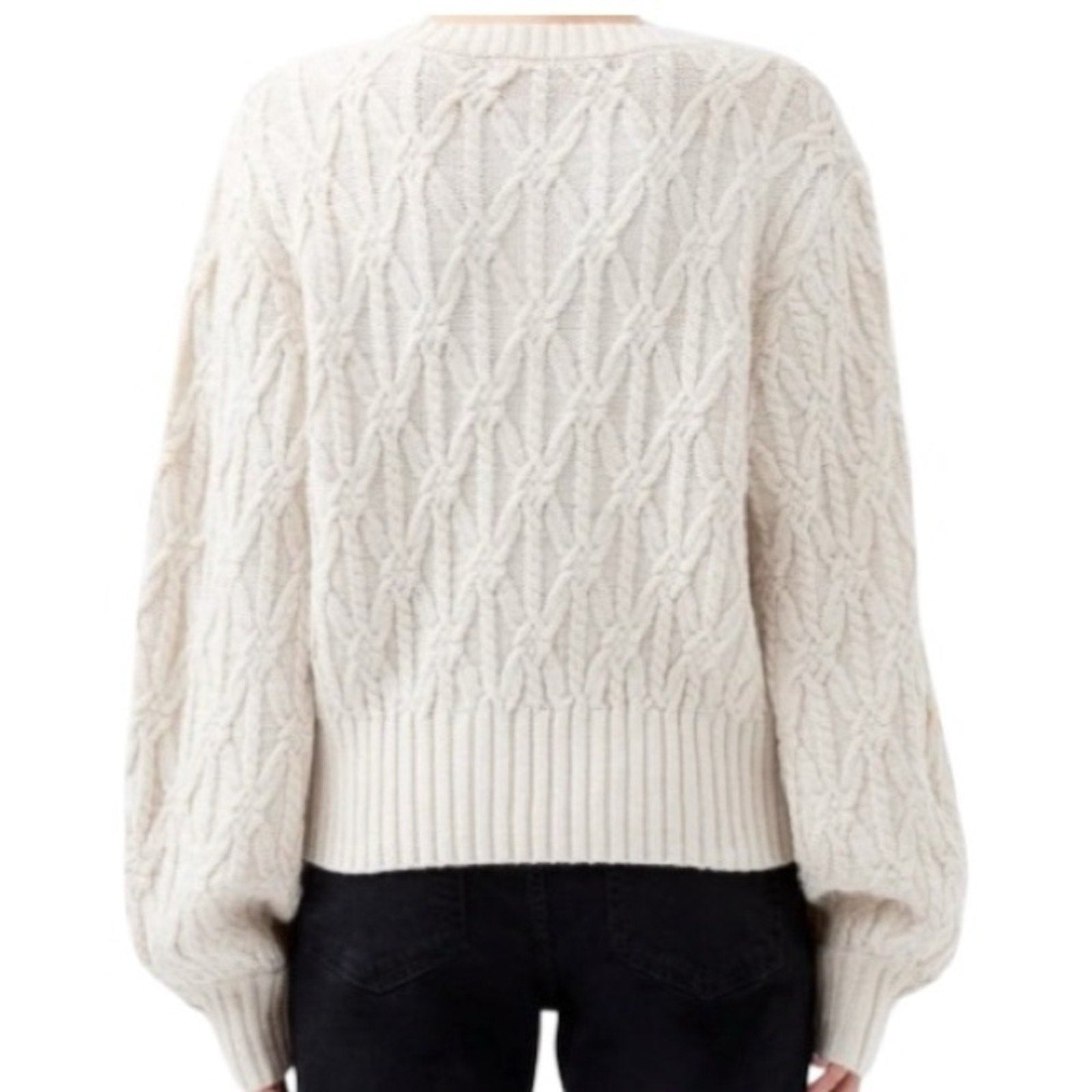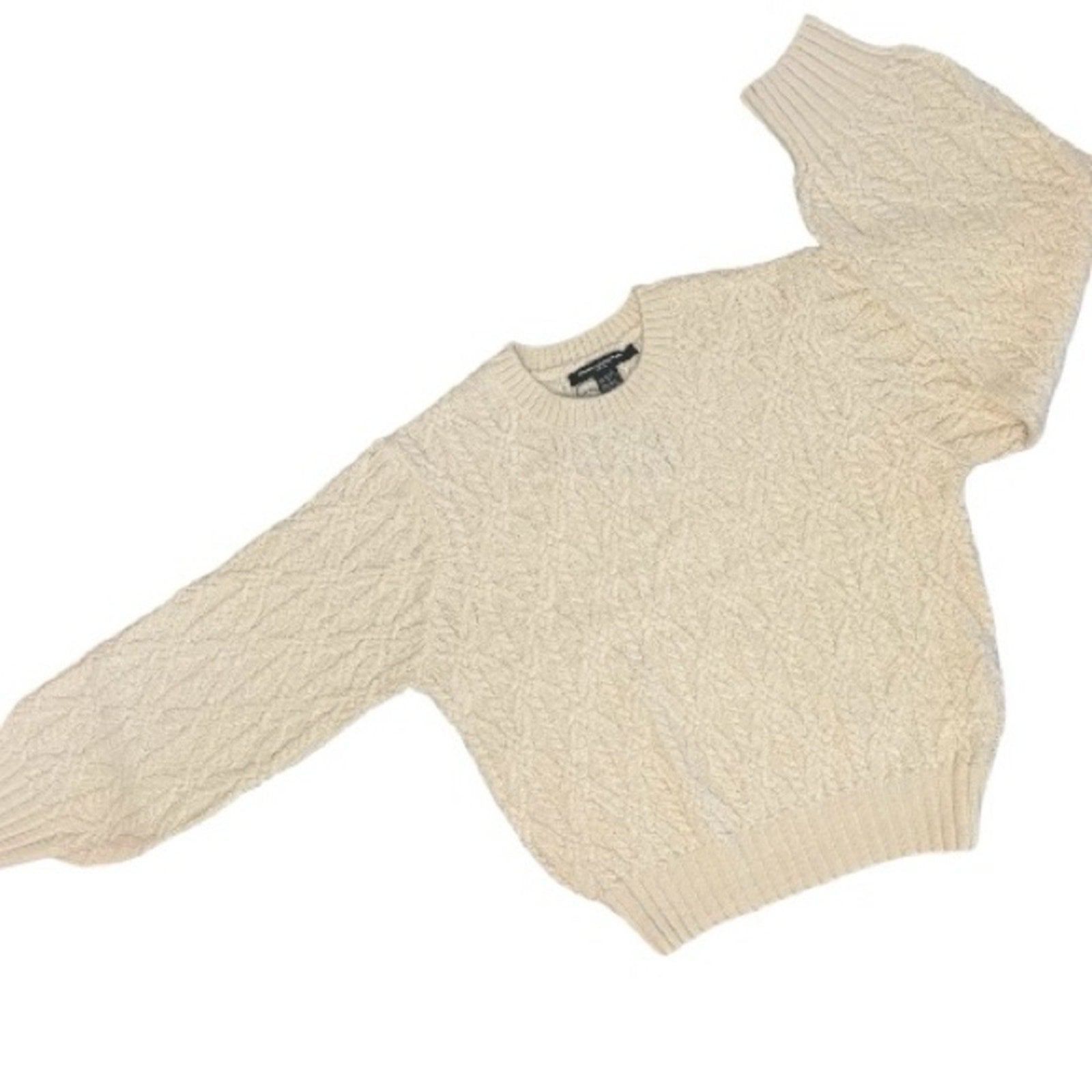 French Connection Layon Jini Cable Crewneck Cream Sweater Size M NWT