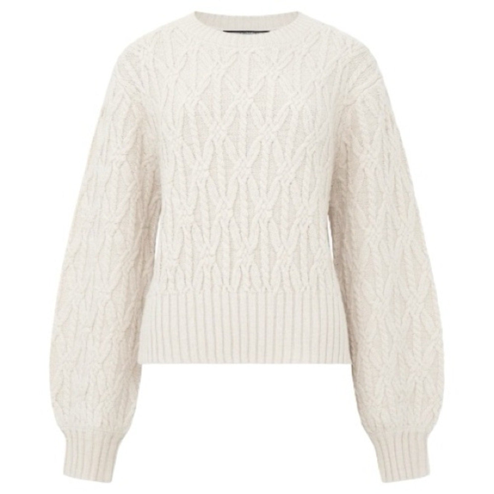 French Connection Channel cosy chic Layon Jini Jumper. This sweet and snug staple is a decorative cable stitch brings shapely balloon sleeves and its soft body to life.
