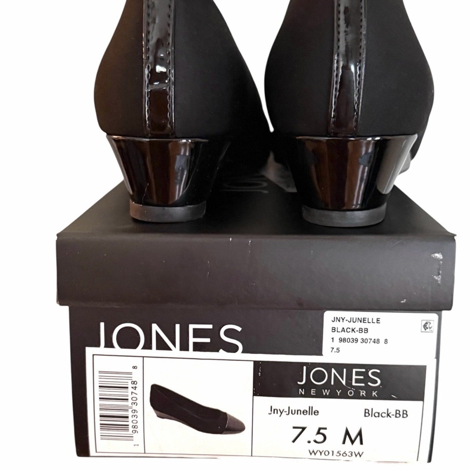 Jones New York Junelle Black Cap Toe Wedge Flats 7.5M NEW IN BOX