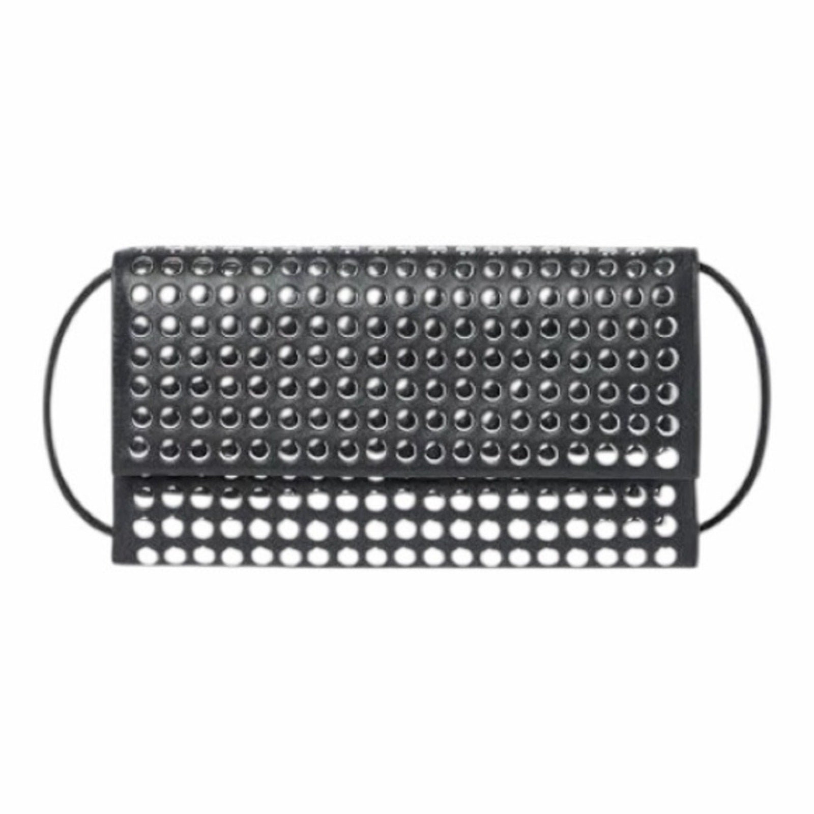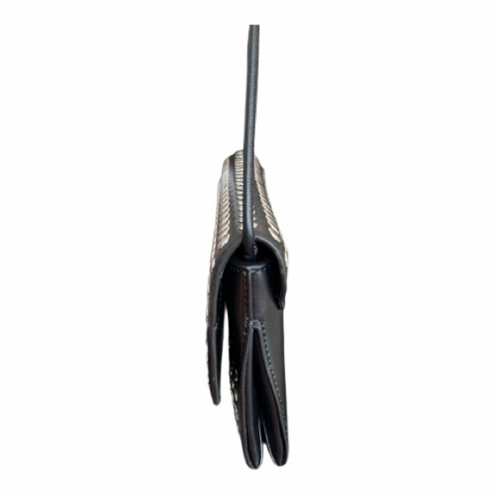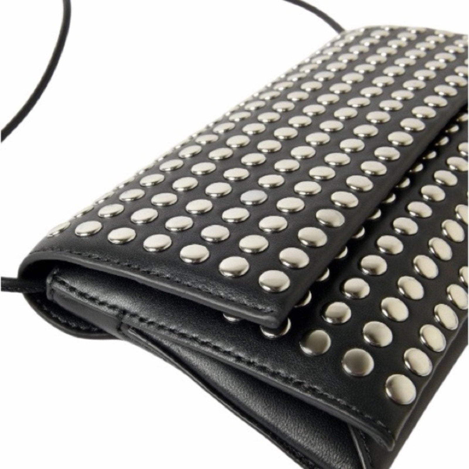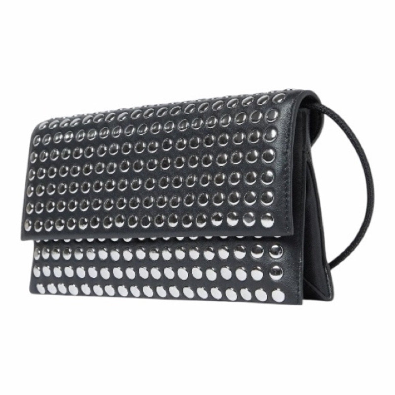 The Loeffler Randall Charlee shoulder bag is crafted from studded leather. It features a rolled shoulder strap with an 8.5 inch drop. The bag can be worn as a clutch or shoulder bag. The flap top has a magnetic closure. The bag is lined with cotton and measures approximately 5 inches in height, 8.8 inches in width and 1 inch in depth. The shoulder bag has a flap open closure. The handle is detachable to all easy carry as a clutch or wallet.