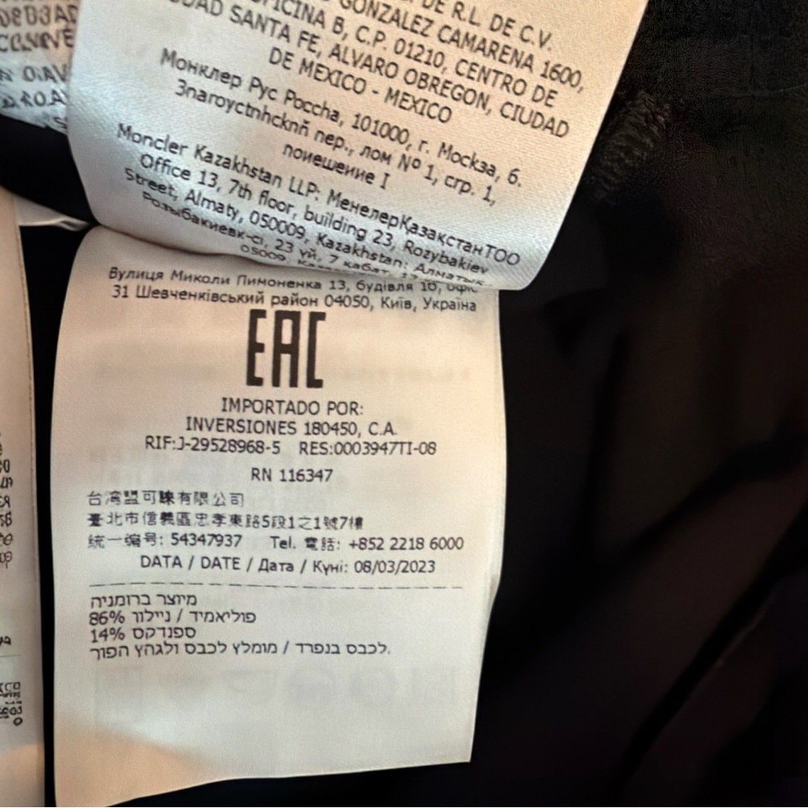 • Authentic Moncler garment