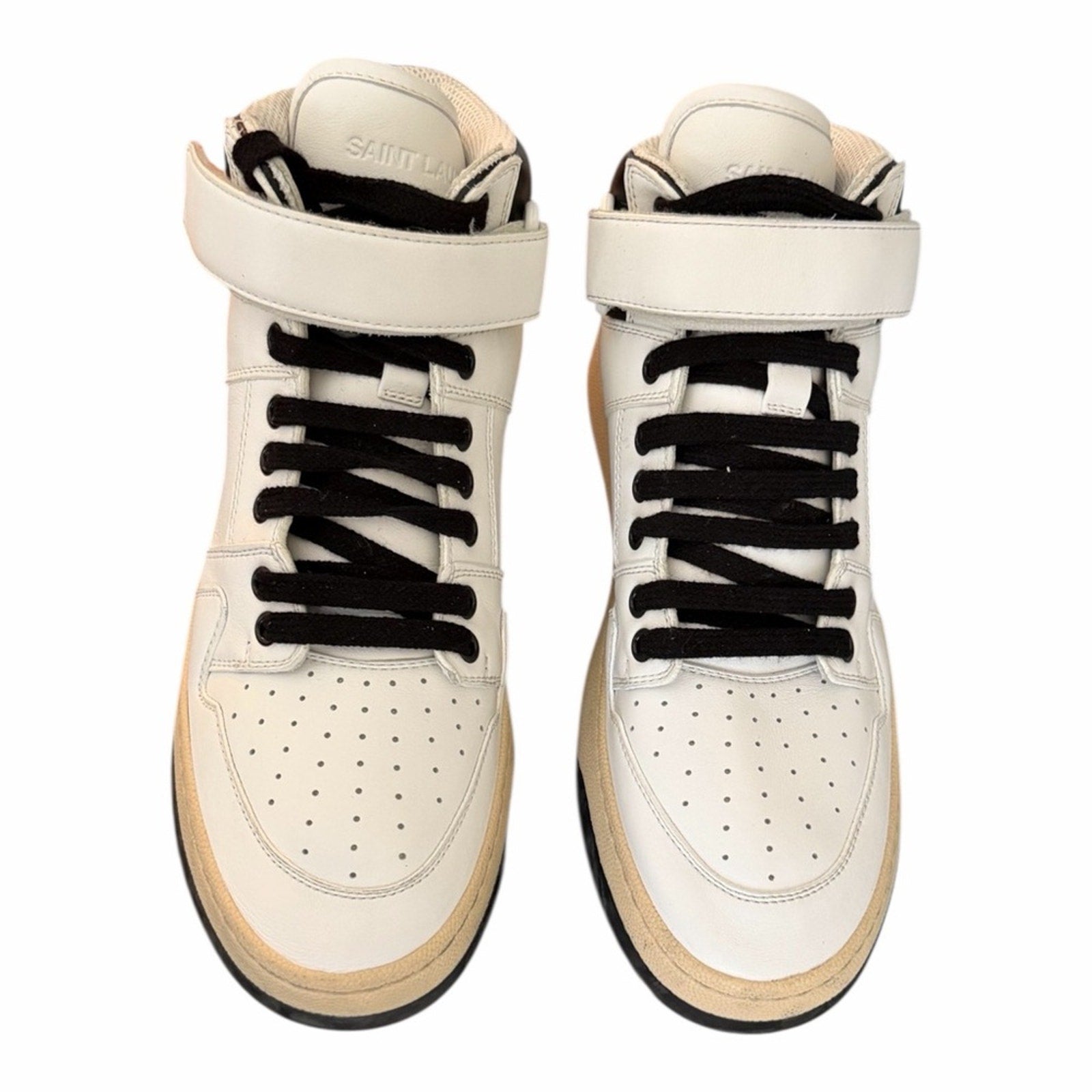 Authentic Saint Laurent Greenwich (also known as LAX) mid-top sneakers in the classic Blanc Optique colorway.