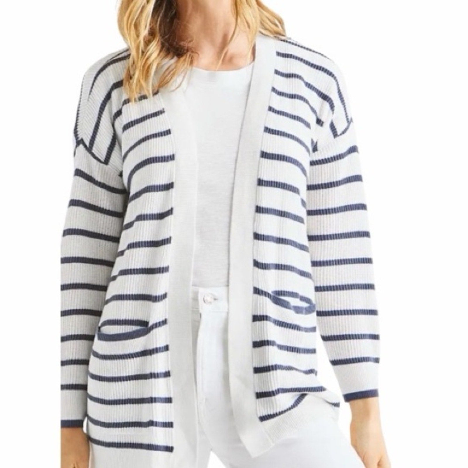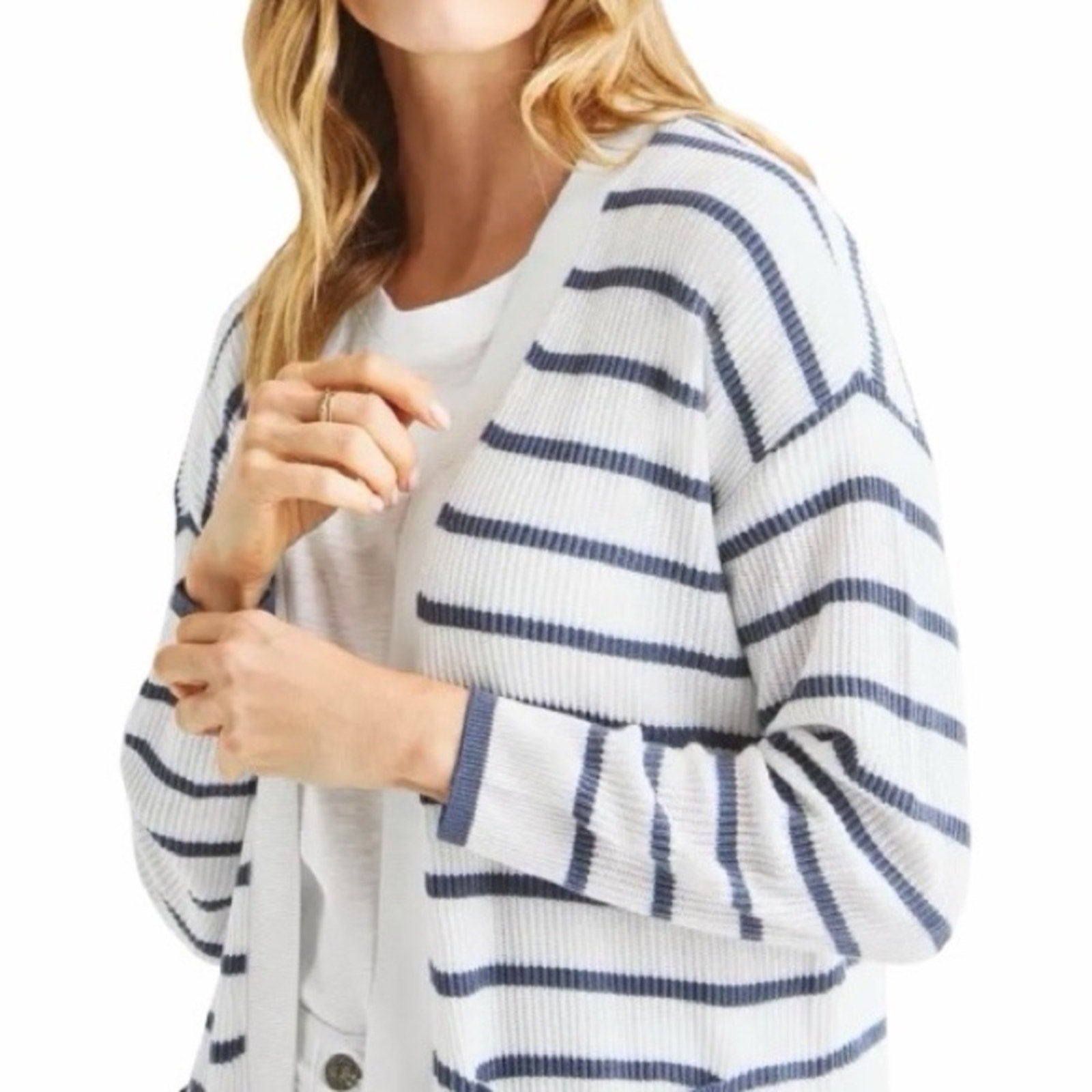 Splendid Collections Luna Striped Cardigan Long Sleeve Blue /White Size L