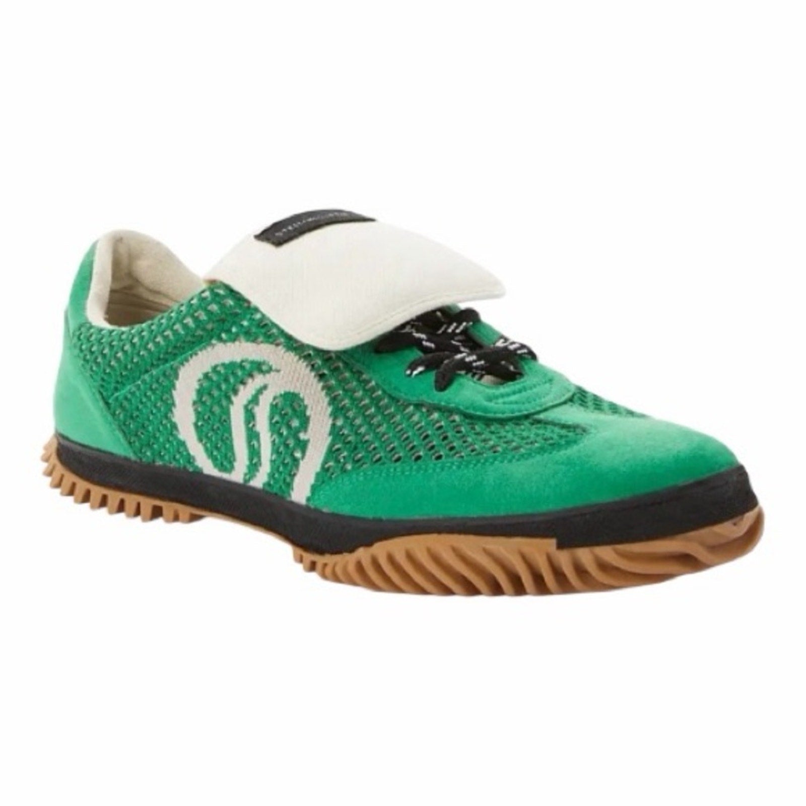 Sleek athletic-inspired sneakers featuring Stella McCartney’s signature S-Wave sole, breathable mesh panels, and vibrant fern green colorway. Crafted with Stella’s signature vegan, eco-conscious materials.