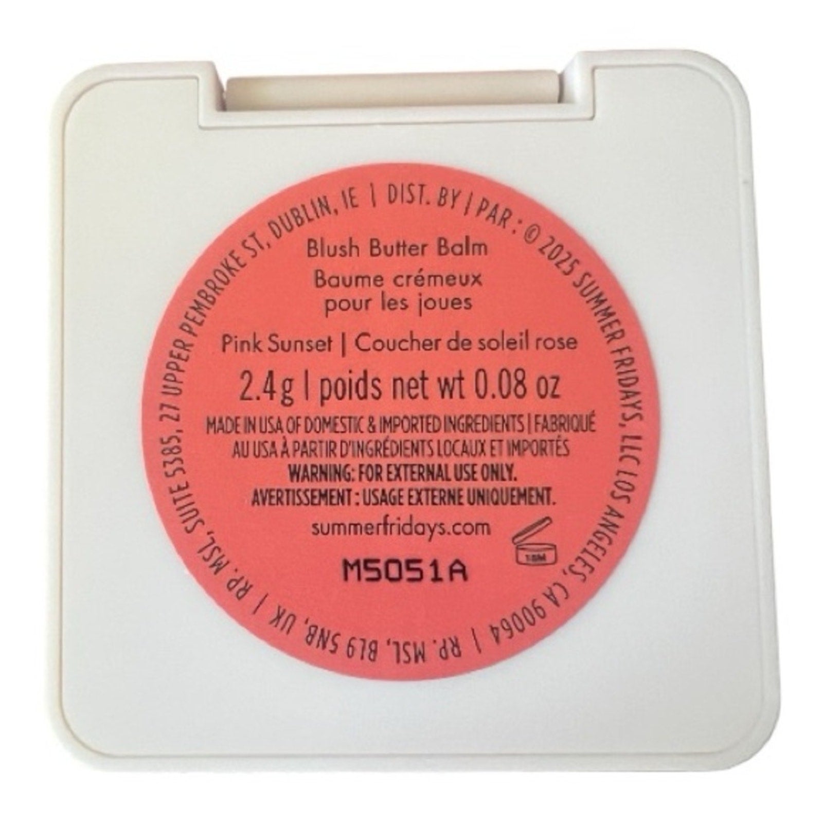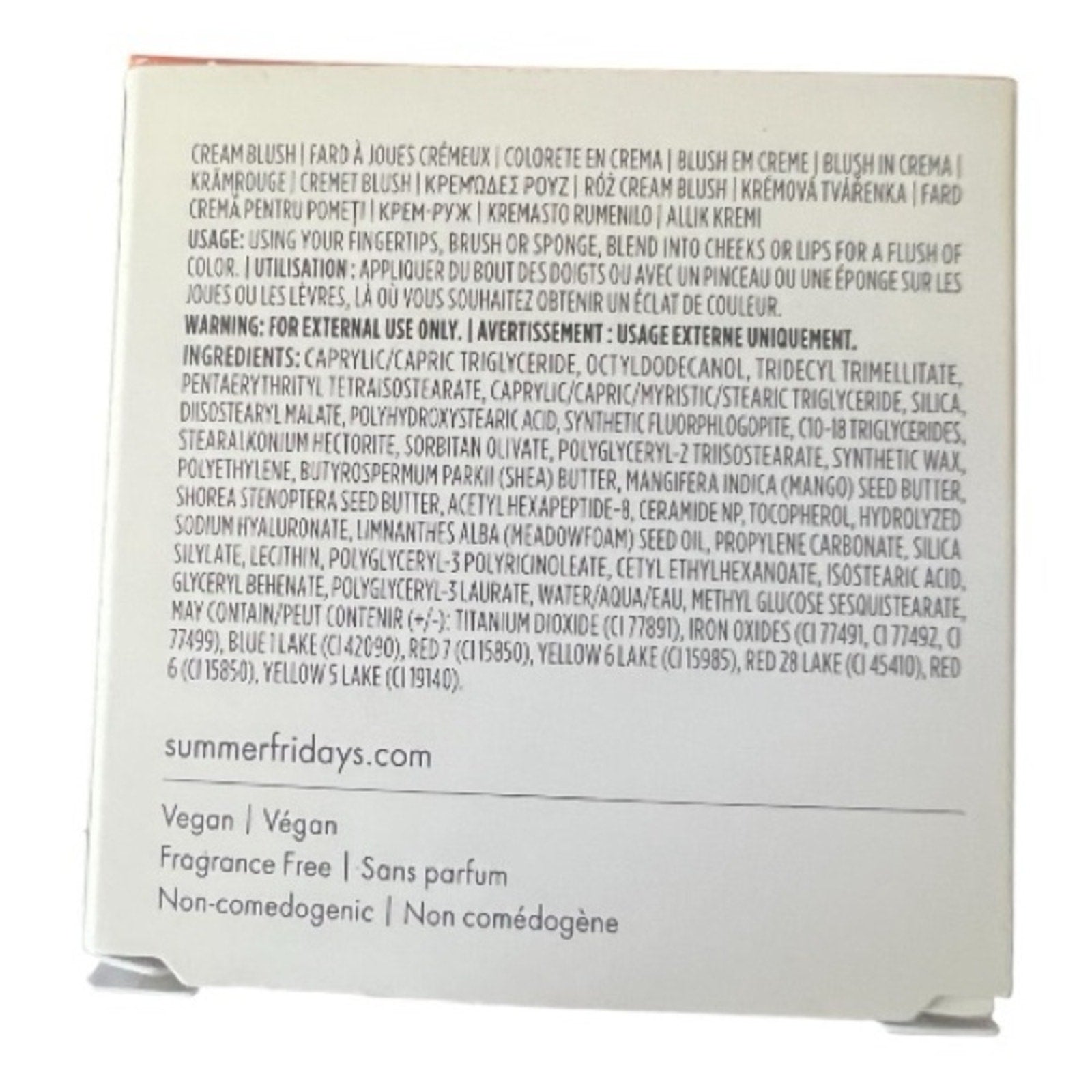 Summer Fridays Blush Butter Balm Blush is Infused with hydrating skincare ingredients, this buttery blush blends effortlessly into the skin for a sheer flush of dewy, long-lasting color. Its creamy formula is non-comedogenic and fragrance-free.