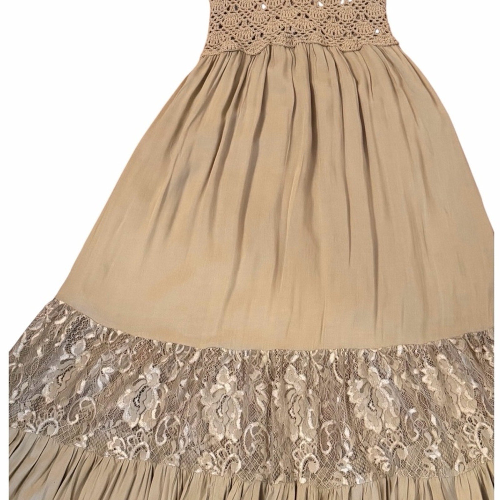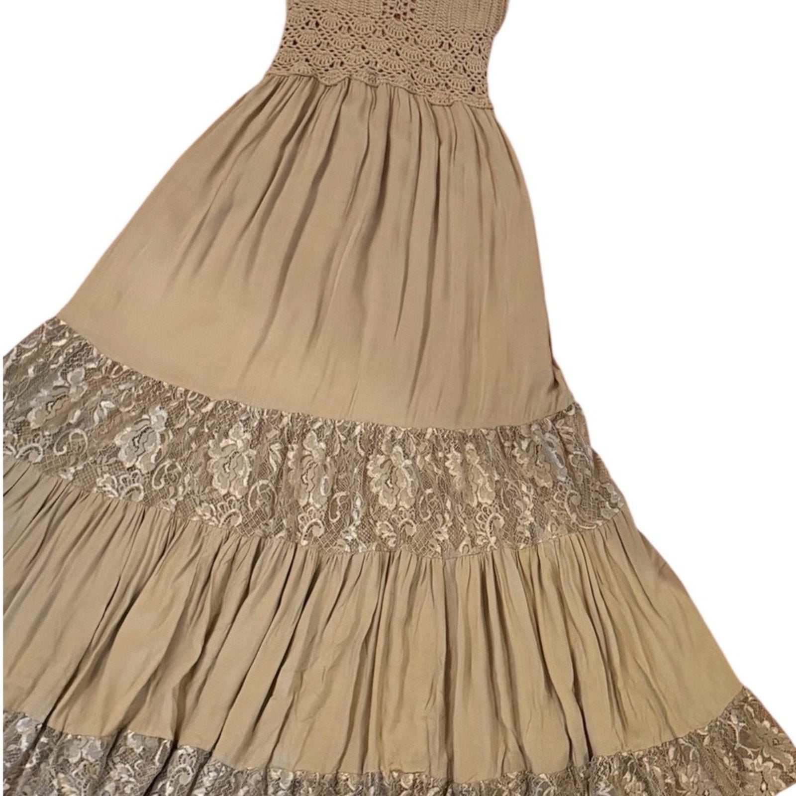 Tiare Hawaii Isabel Macrame Maxi Dress Crochet Halter Lace Boho Resort NWT S/M